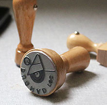 we are working with a local stampmaker to so you can have custom stamps for your record labels and/or record covers.